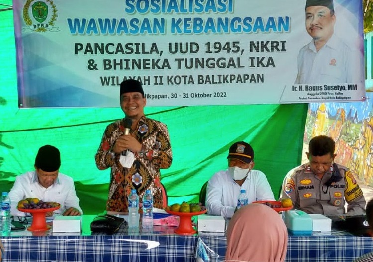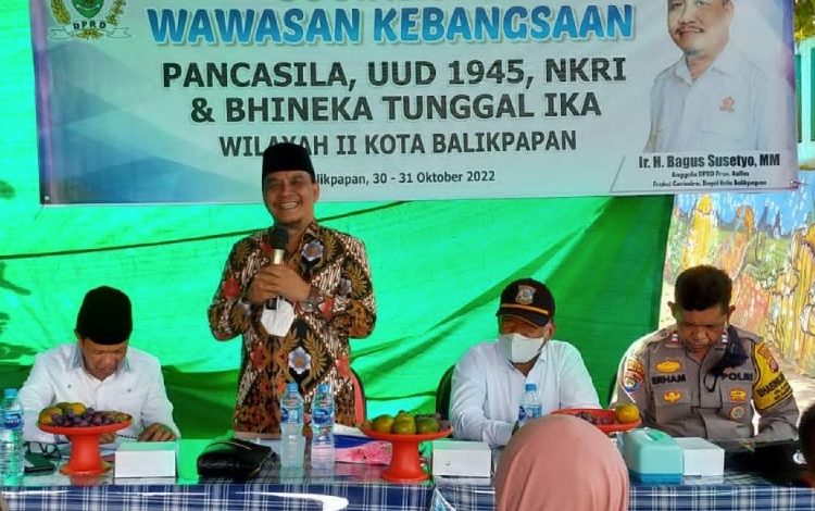 Anggota DPRD Kaltim Bagus Susetyo menjelaskan, Wawasan Kebangsaan ini sangat penting disosialisasikan kepada masyarakat, terutama 4 pilar kebangsaan yakni Pancasila, Undang-Undang Dasar 1945 (UUD 45), Negara Kesatuan Republik Indonesia (NKRI) serta Bhineka Tunggal Ika. “Jadi sosialisasi empat pilar kebangsaan ini untuk menumbuhkan kembali kesadaran masyarakat dalam berbangsa dan bernegara,” kata Bagus Susetyo.