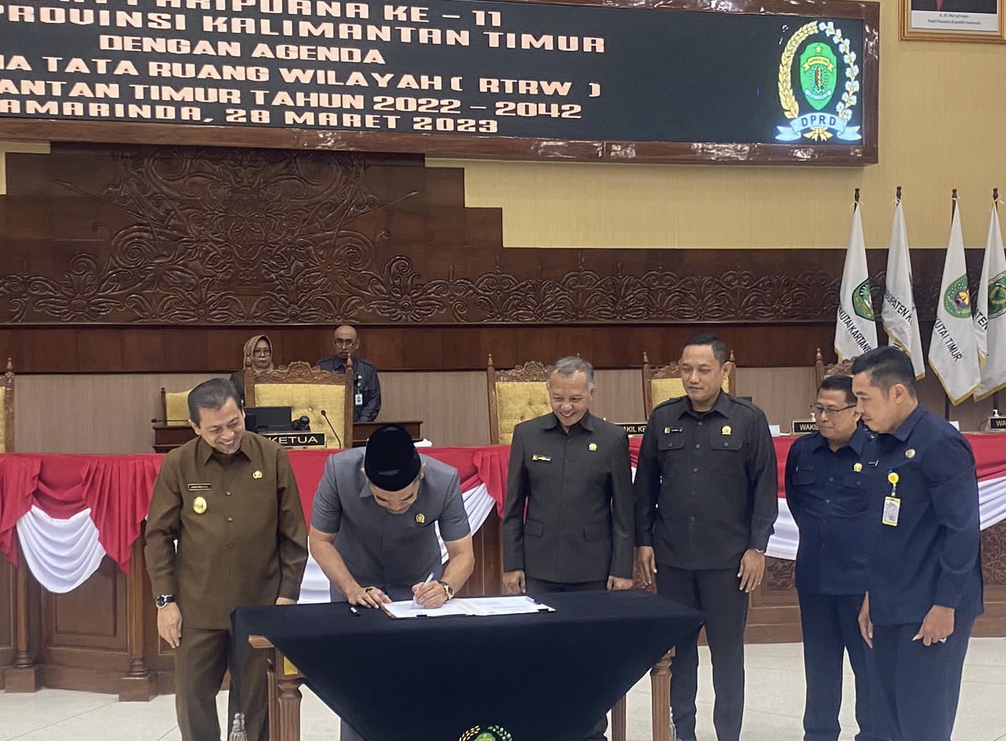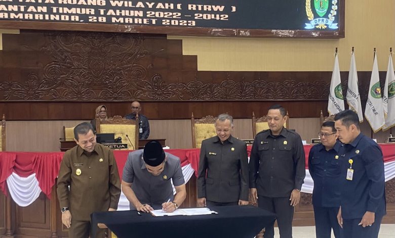 Garda.co.id, Samarinda – Dewan Perwakilan Rakyat Daerah (DPRD) bersama Pemerintah Provinsi (Pemprov) Kalimantan Timur (Kaltim) dalam hal ini diwakili oleh Wakil Gubernur (Wagub) Kaltim, Hadi Mulyadi menandatangani persetujuan pengesahan Rancangan Peraturan Daerah (Ranperda) tentang Rencana Tata Ruang Wilayah (RTRW) Kaltim Tahun 2022-2042.